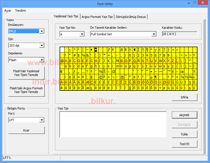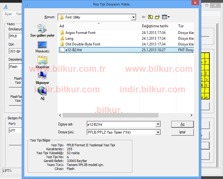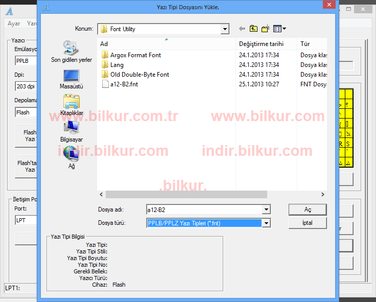 Yazı Tipi bölümünden Yükle butonuna tıklayarak, Dosya Türü : PPLB (yazıcının dilini seçmeniz gerekiyor)