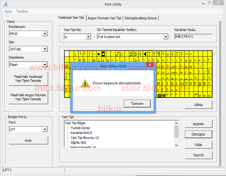 Yazı Tipi bölümünden Dönüştür butonuna tıklayarak yazıcıya yüklenecek olan fontların dosyası oluşturmalıdır.